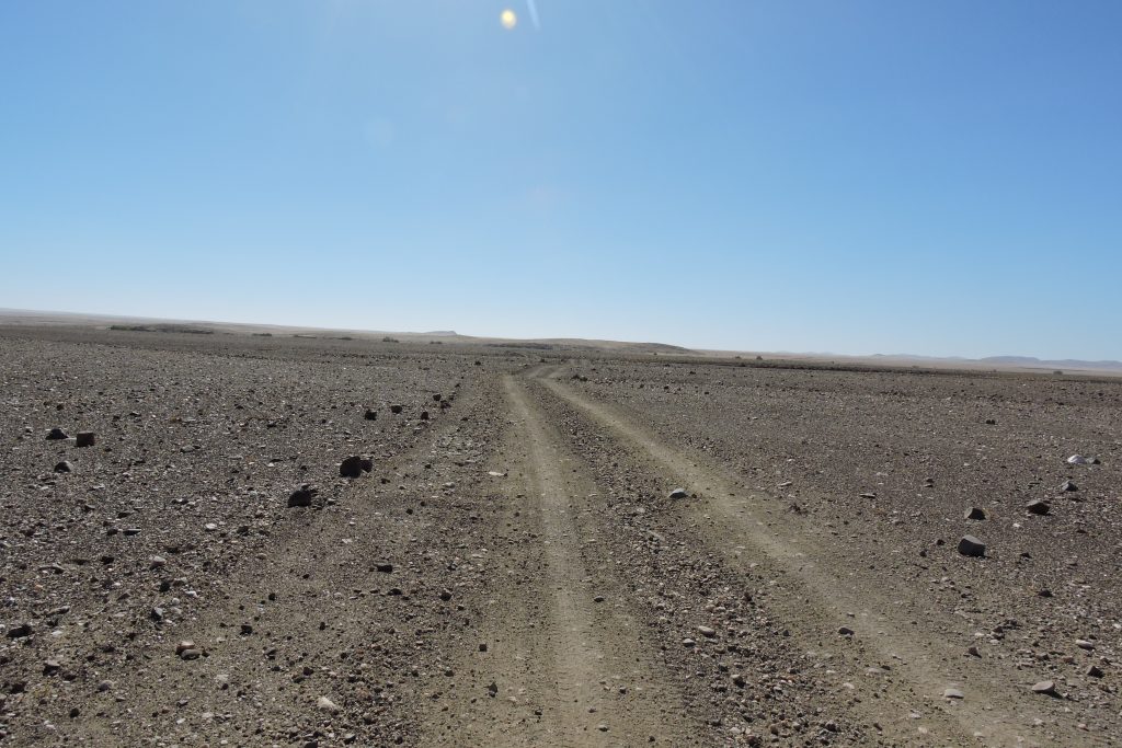 Die pad raak nou ongelooflik sleg, sinkplaat en klippe, maak nie saak watter spore (en daar is baie) jy probeer volg nie. Daar is ook nie ‘n goeie spoed nie – alles skud uitmekaar. Die omgewing maak egter op daarvoor, veral as die gemsbokke op die vlakte staan en wonder wat soek ons hier. Dis as jy by die stukkende buitebande verbyry, dat jy spoed verminder en ekstra fokus op die pad voor jou, net nie nou ‘n band verloor nie!