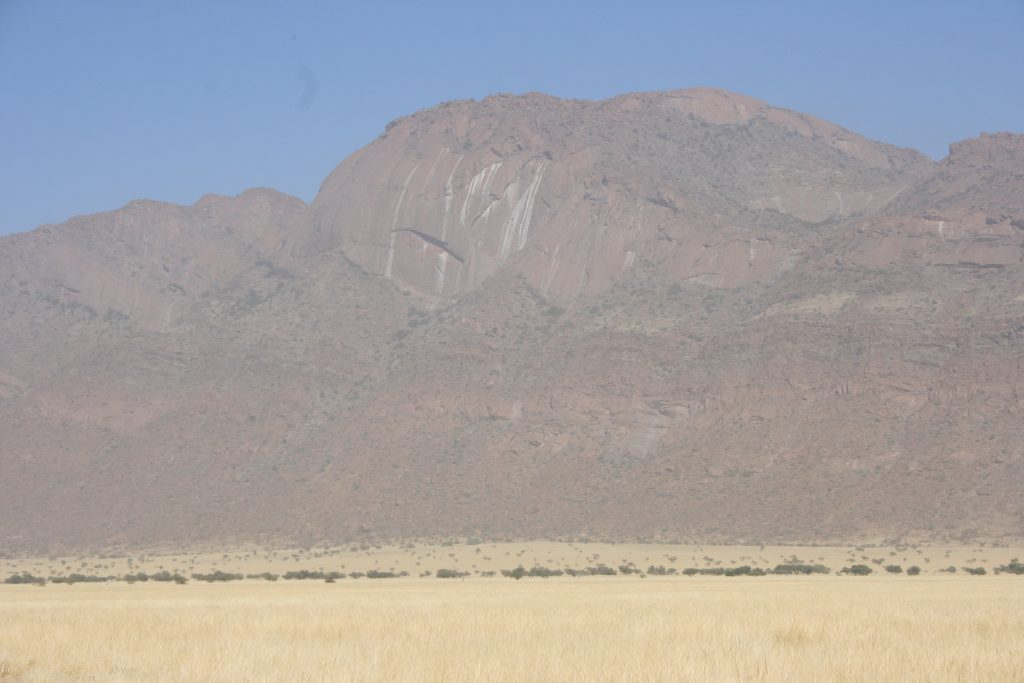 Ons roete vandag is enige iets tussen 150 en 200 km, weet nog nie presies waar ons gaan stop nie. Ons wil iewers in die Olifants Vloedvlake, in die Kumib rivier kamp. Die eerste 60 km is terug deur die Marienfluss, dieselfde paadjie waarmee ons gekom het. Dis weer die grasvlaktes, springbokke, volstruise en gemsbokke wat jou oral langs die pad begroet. Die berge aan weerskante van die vlakte lyk ook anders vandag, ‘n ander kleur as die son uit ‘n ander hoek die prentjie inkleur. Al baie fotos van die Marienfluss gesien, maar nog nooit so mooi soos dit werklik is nie, moet dit self beleef.