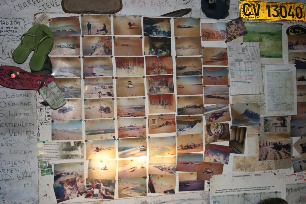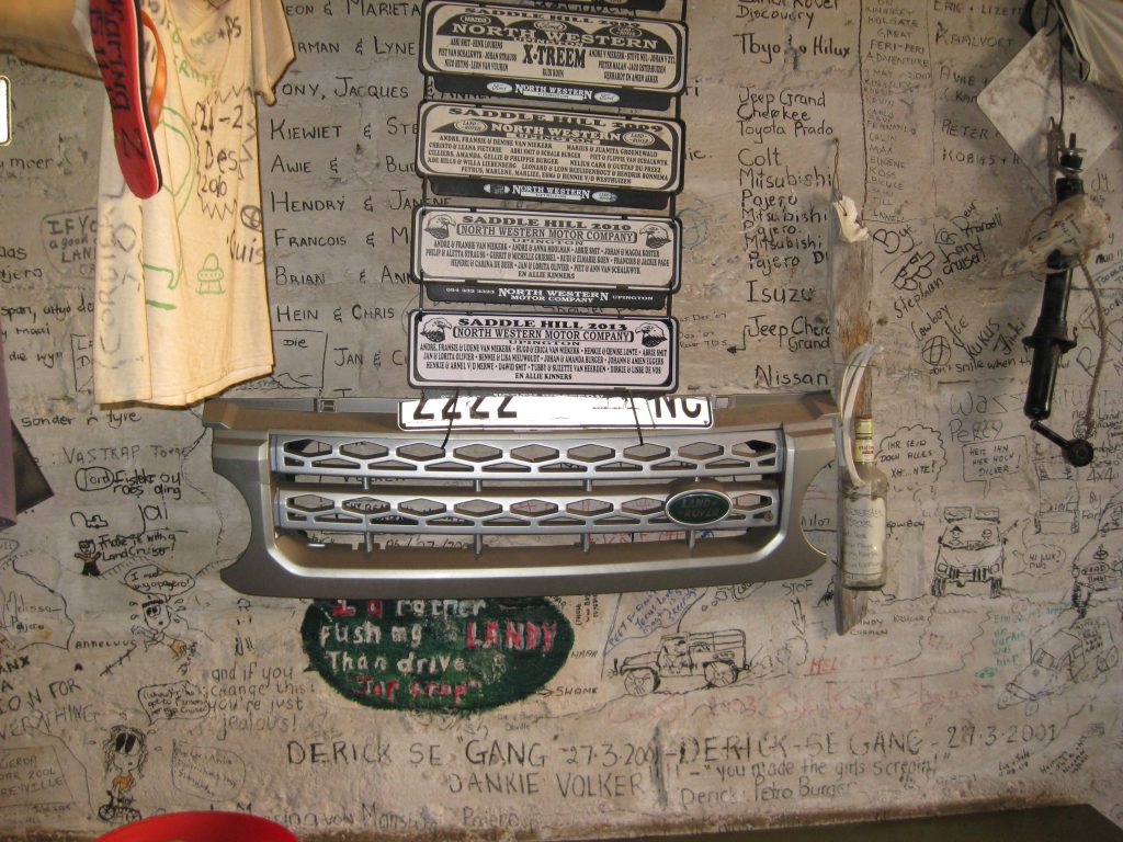 Een aand is te min om al die memorabelia en tupperware in die Den te bestudeer. Die 4×4 manne praat van tupperware as hulle verwys na al die parte van die voertuie wat afval op so trip, bumpers, modderskerms, nommerplate, ens. ens. Hier is ook oral name en datums van vorige besoekers teen die mure geskryf, jy kan lang stories hier lees.