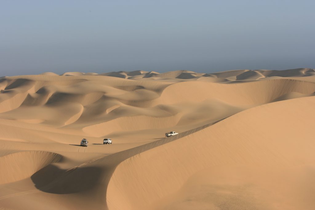 Dis net na half drie as die konfooi die kamp verlaat. Ons vat rigting Oos die duine in.
