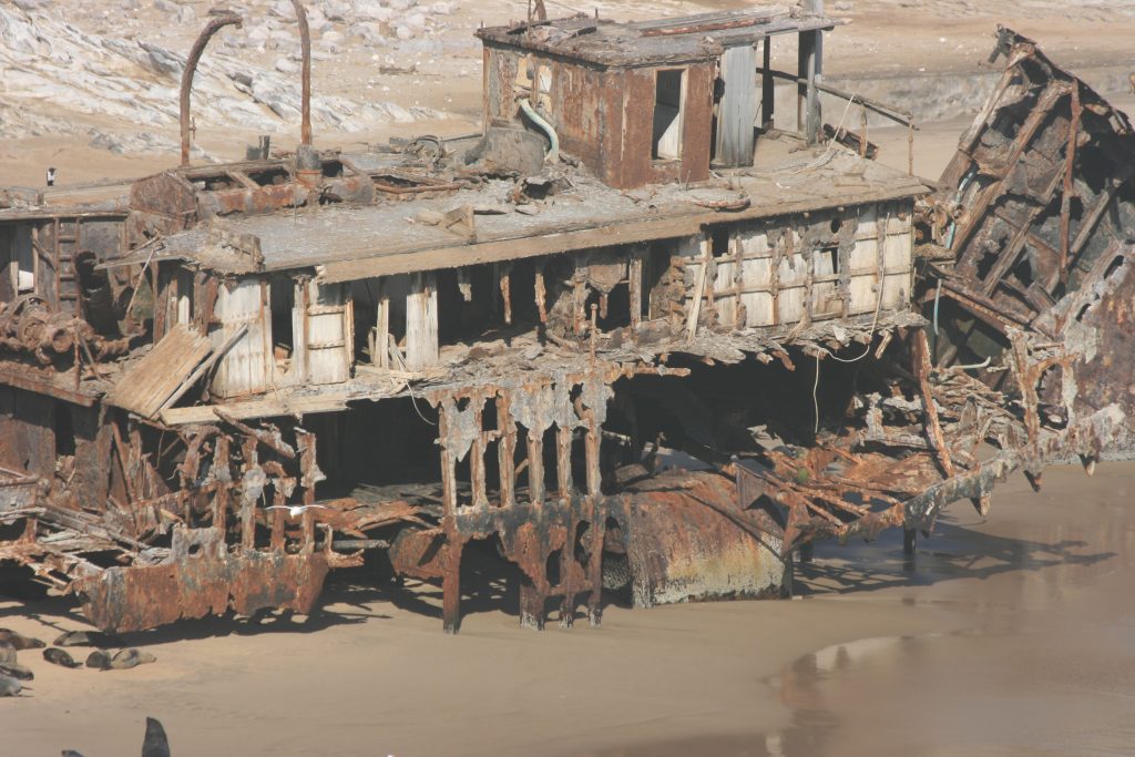 Dis die Otavi, ‘n skip wat guano hier kom oplaai het en gestrand het in 1945. Hy word sedertdien “opgepas” deur ‘n groot kolonie robbe.