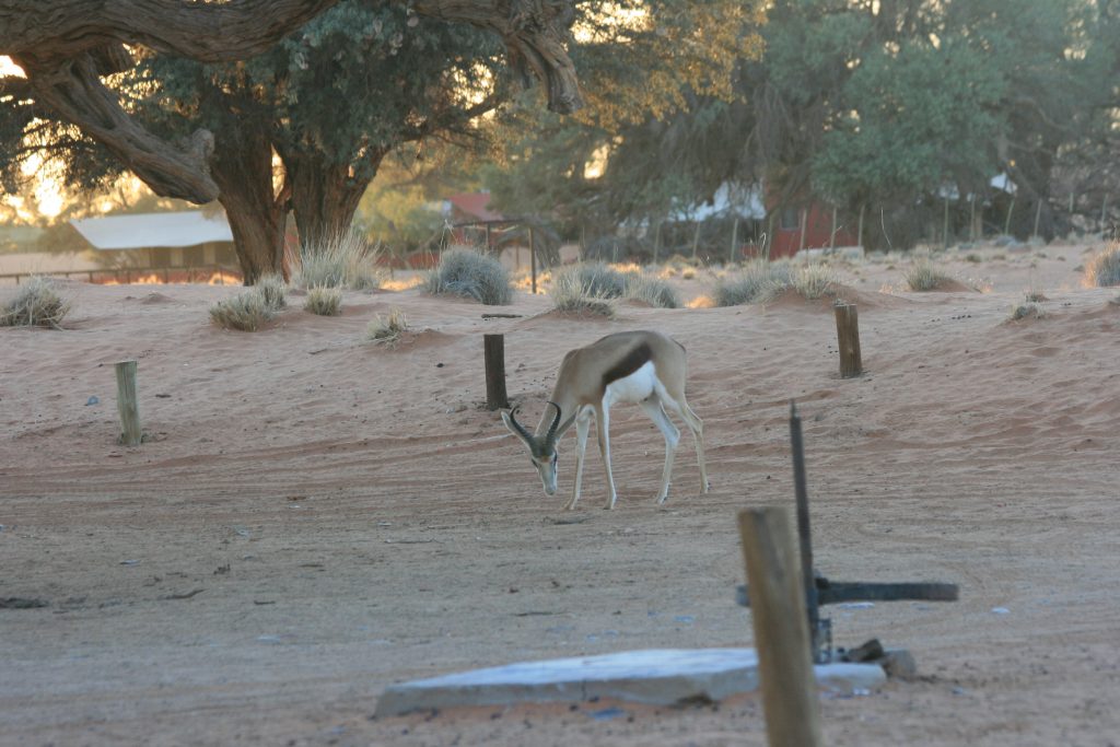 Die springbokkies het al kom inloer as ons by die tent uitkom. Vandag ry ons 350 km tot op Swakopmund. Die 80 km pad tot op Solitaire kan soms ‘n uitdaging wees, klipperig en sinkplaat. Daarna is dit eers oor die Gaubpas en dan die Kuisebpas, af na die vlaktepad deur die woestyn.