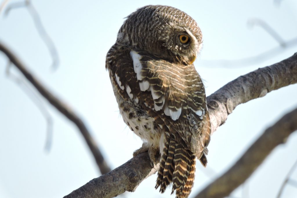 Die res van die middag kuier ek en Moeksie lui-lekker hier by die watergat. Barend het intussen sy sus gaan kontak en sê dit gaan baie sleg met sy ma. Hulle sal daaroor praat en vanaand ‘n finale besluit neem. ‘n Witkoluil (Pearl-spotted Owlet) het vir groot vermaak gesorg die middag , het van boom tot boom saam met ons gekuier. Interessant hoe diere mekaar respekteer. Met die aankoms was daar ‘n maraboe, later het ‘n leeu wyfie gekyk of sy ‘n zebra kan vang maar vinnig besluit dit gaan nie werk nie.