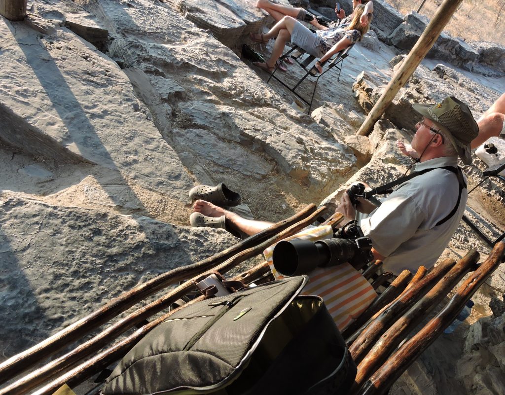 Teen brunch is ons terug in die kamp, baie tevrede met die sightings van die oggend. Met vol magies pak ons die cooler bokse, gaan die res van die dag hier by die watergat deurbring. As ons stelling inneem op die bankies is dit die man met die groot video kamera hier voor ons wat ons aandag trek. Hy is ‘n proffesionele fotograaf wat fotos en videos neem vir verskeie internasionale maatskappye. Ek droom ook om, eendag as ek groot is, ‘n lens soos syne op my kamera te kan sit.