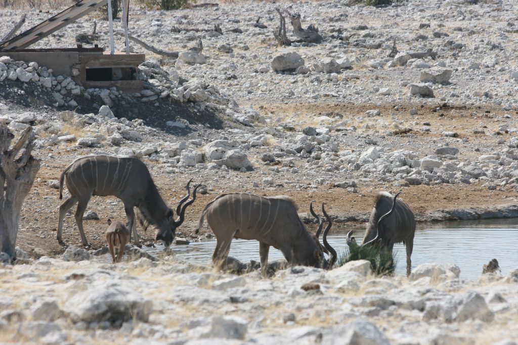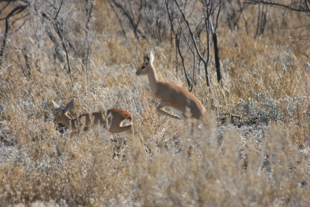 Ons is vroeg uit die vere en vat die pad in ‘n oostelike rigting. Oral is weer heelwat olifante, kameelperde, steenbokkies, springbokke, leeus, koedoes, swartneus rooibokke, renosters, hiëna, en ‘n veskeidenheid voëls.