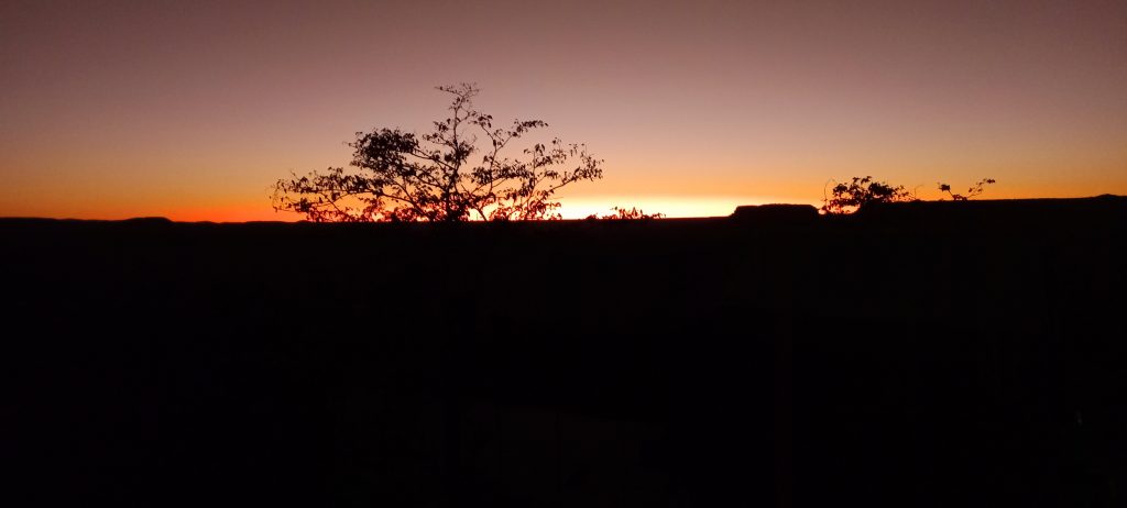 Ons het lekker geslaap en is op voor die son sy kop uitsteek. Dis redelik koud as ons op die stoepie sit met ‘n koffie in die hand en wag vir die son om op te kom.