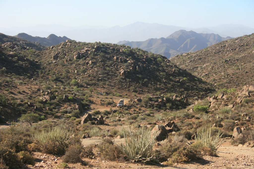 Ons vorder fluks en die radio’s klets as ek vertel van die vorige maal wat ek hier was, ʼn hele paar jaar gelede. Dieselfde waentjie nog sonder ʼn inloopbriek, met ʼn Hilux 2.7 2×4. Dit was rêrig ʼn vreesaanjaende ervaring, want jy moes redelik vinnig teen die opdraandes uitry, rotse en klippe mis, pad te hou en om nie momentum te verloor nie, want ek sou nie weer kan wegtrek met die 2×4 en die gelaaide waentjie teen die steiltes nie. Ek was BAIE waaghalsig of het BAIE vertroue in my Toyota gehad daardie tyd, ʼn rit wat Moeksie glad nie van gehou het nie. Maar nou is ek reg, kan nie wag om Akkedispas met my Hilux 4×4 kaf te draf nie! Die waentjie is ook intussen toegerus met ʼn inloopbriek, na my Sanipas wedervaringe, maar dis ook ʼn storie vir ʼn ander dag.