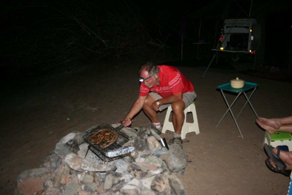 Ons bou ʼn braaiplek van klip voor die “kombuis” met ʼn mooi uitsig oor die rivier. Hier gaan ons lekker kuier. Ons braai hoender, wors en eet ʼn knoffelbroodjie. Dit is lekker koel hier langs die rivier en ons behoort goed te slaap.