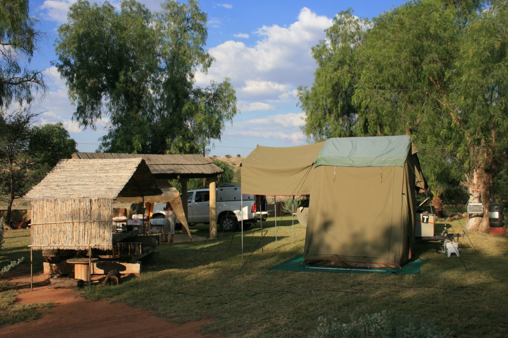 Ek en Moeksie kyk nie lank vir mekaar nie, het redelik baie duine gesien die afgelope tyd, sal die grasperk verkies. Ons betaal vir een aand en slaan kamp op.