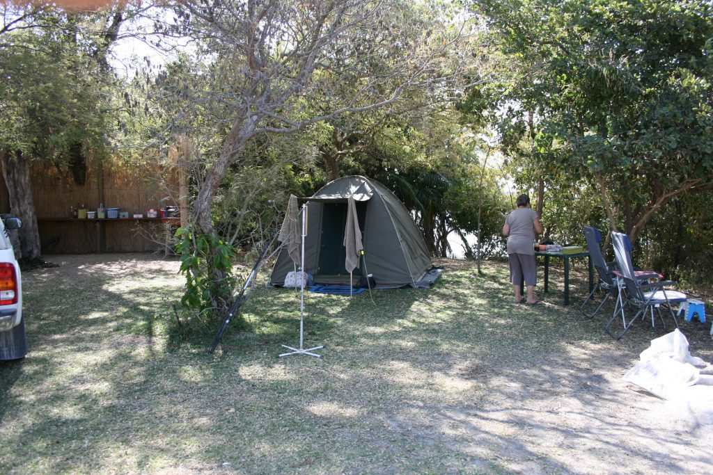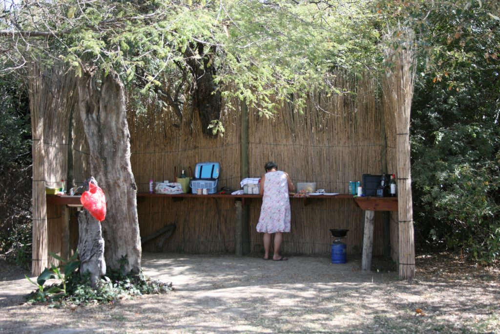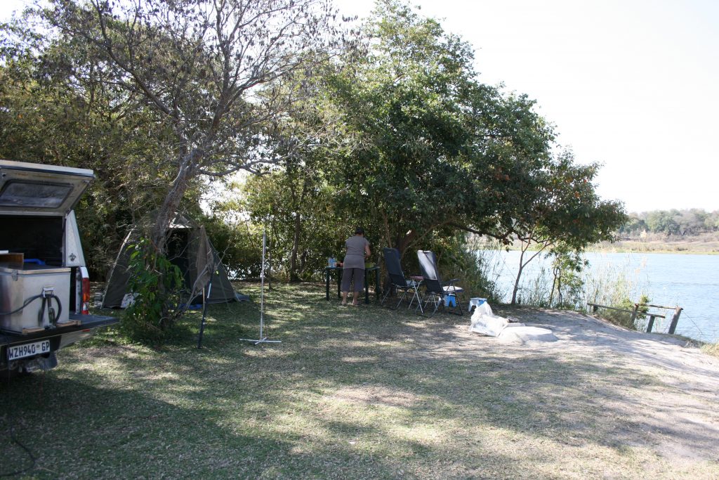 By staanplek no 20 aangekom is ons verbaas oor die grootte van die staanplek. Dis ook sommer langs die ablusie en baie belangrik, ek het maklike toegang tot die rivier vir visvang! Ons is in die paradys !!!! Hier stop jy jou voertuig op die sand en slaan kamp op op die netjiese gras. As hulle jou vang dat jou voertuig op die gras staan, betaal jy ‘n R200.00 boete, wil die gras beskerm. Staanplek no 20 het ook ‘n groot skerm uit riet gebou, met ‘n opwas en baie rakke vir pakplek. Ideaal vir ‘n groot groep.