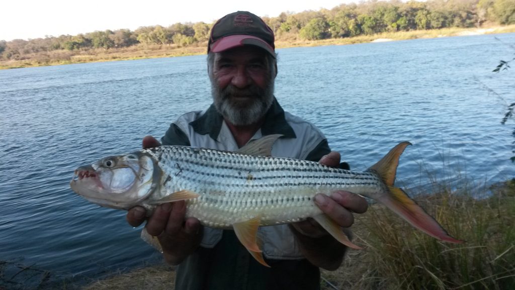 Die tyd het aangebreek, die tiere roep! Het al heelwat tiervis gevang, maar nog net van ‘n boot af. Sal kyk of die locals by die lodge waarheid gepraat het. Gesê hier is op die oomblik baie tiervis. Sommer met die eerste gooi, Mepps Black Fury no 3, haak ek die eerste een, so ongeveer 3 kg! Die adrinalien pomp as ek sommer binne ‘n uur meer as 12 tiere uithaal, waarvan ‘n hele paar tussen 3kg en 5kg was !! Kan dit nie glo nie en dink dadelik aan Elsa, hoe sy hierna uitgesien het.
