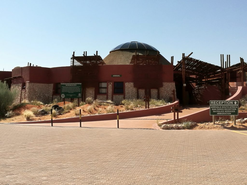 Ons is net na 14:00 by Twee Rivieren en boek in vir die aand. Ons moet ook hier die oorgrens dokumente voltooi, het vansuit Namibië teruggekom na SA. Hoewel hulle by die Mata Mata grenspos dokumente nagaan, word dit by hierdie hek geprosesseer.