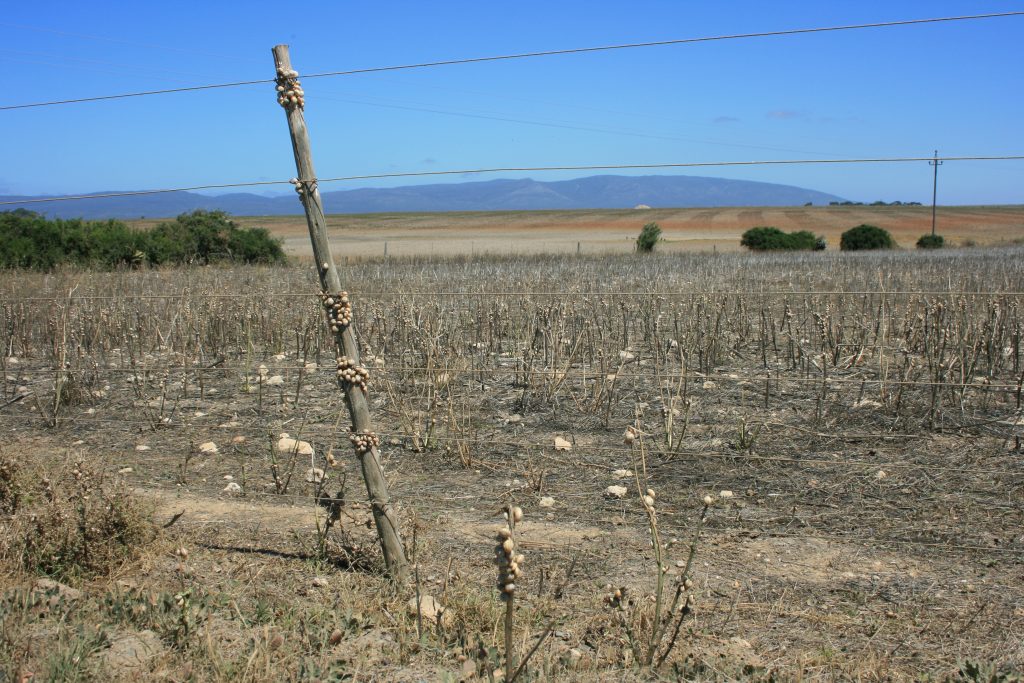 Oor die rivier ry ons verder en gaan besoek eers Witsand. Die miljoene slakke oral teen die plaasdraad verstom my, selfs die stamme van die struike oral in die veld is oortrek met die skulpies wat op sommige plekke in trosse saamgepak is. Interessante verskynsel.