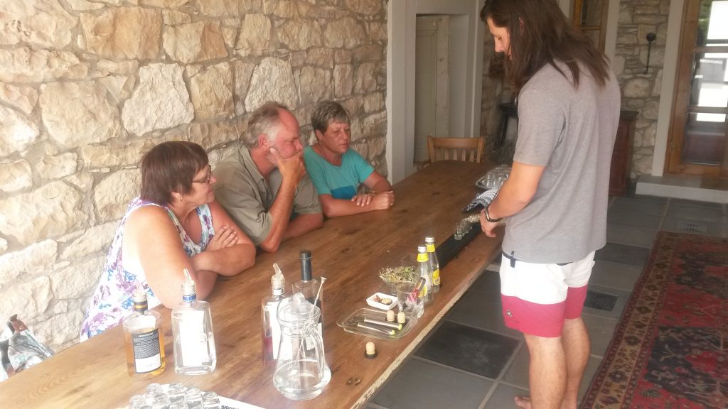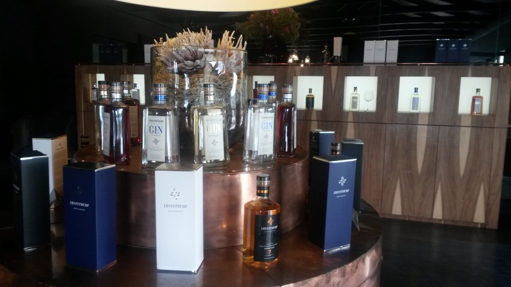 Ons stort lekker en besluit om te gaan Gin proe by die bekende distilleerder Inverroche, net buite Stilbaai. Al baie van hulle gehoor maar nog nie daar gewees of hulle produk geproe nie, nie dat ek ʼn groot Gin mens is nie. Moeksie geniet nogal nou en dan haar G&T. Ons word hartlik ontvang en word gevra om net ʼn rukkie te wag in die ontvangslokaal, iemand sal nou na ons kom omsien. Die jong man stel homself voor en hy sal ons deur die aanleg vergesel en ʼn proe-sessie aanbied. Hy is die seun van die eienaar, het aan die Universiteit van Stellenbosch sy graad verwerf en nog altyd ʼn belangstelling en liefde gehad om met veral fynbos as kruie vir smaak in drank te eksperimenteer. Dis ʼn redelike klein maar BAIE netjiese opset hierdie en ons word in die fynste besonderhede vertel van al die prosesse en dinge, die ryk geskiedenis aan die plek en van die prosesse, van die begin tot by die eindproduk, veral die fynbos wat die hoof bestanddeel is in die verkryging van die spesifieke en besondere smake van elk van hulle produkte. Ons is aangenaam verras en kon nie sonder ʼn bottel of twee daar wegstap nie. Koop vandag nog vir die bederf nou en dan vir Moeksie een om te geniet, rêrig besonders.