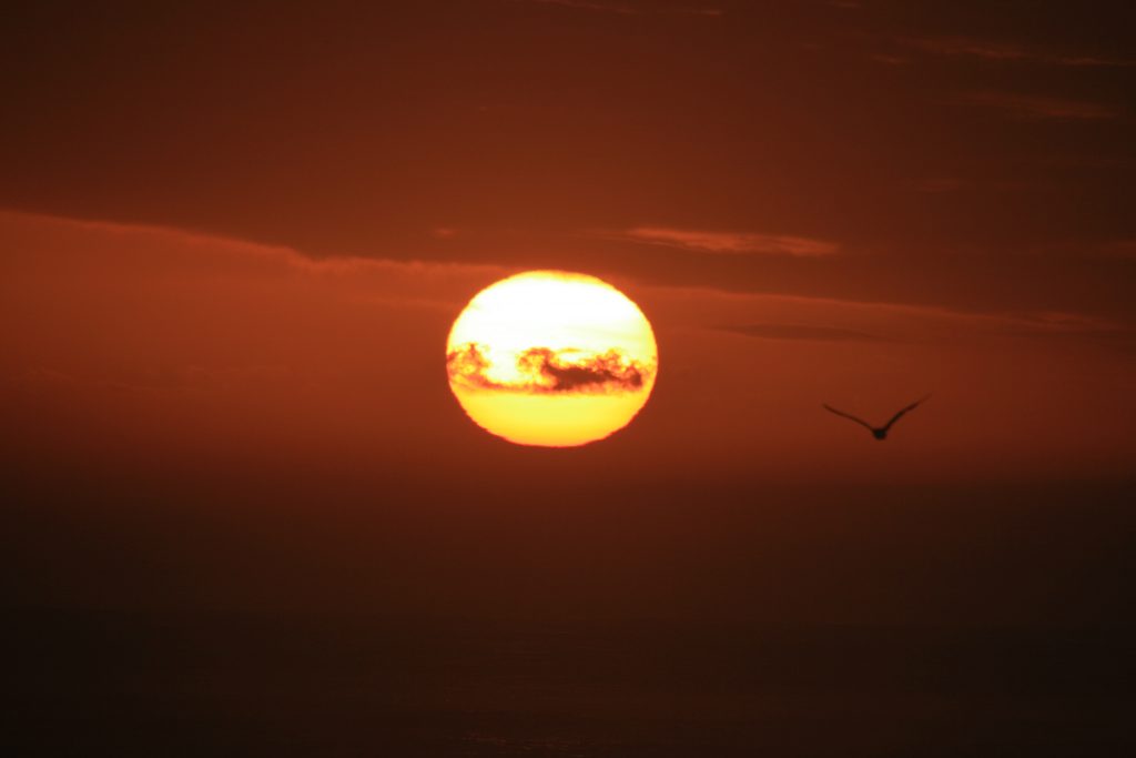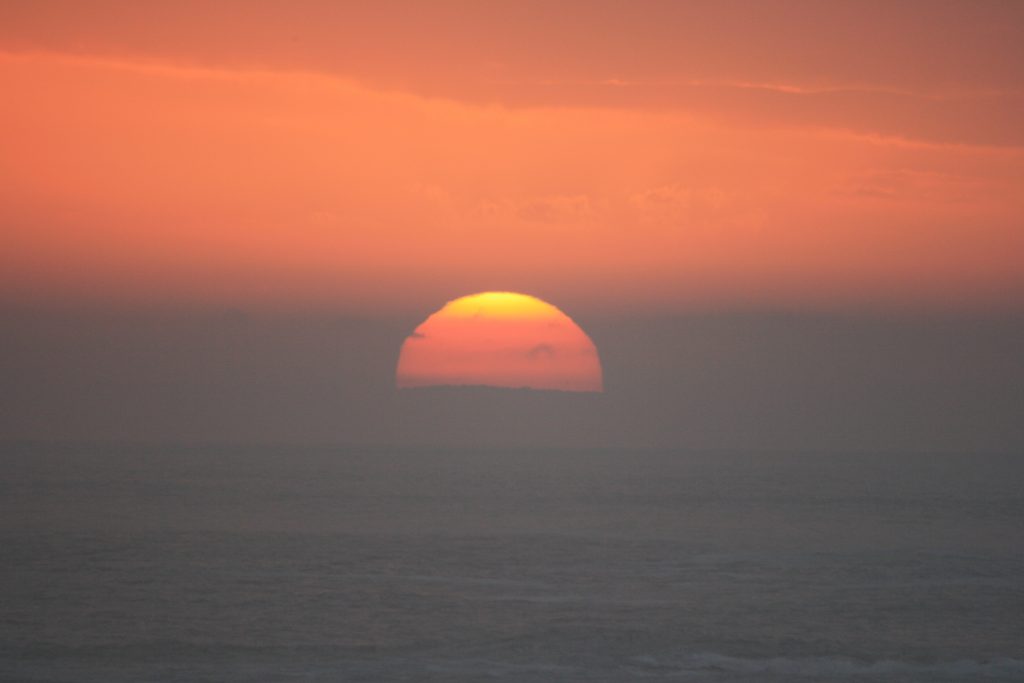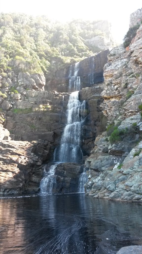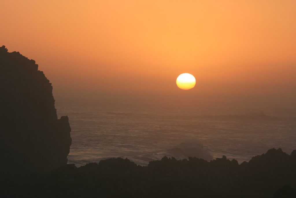 Die sonnetjie begin laag sak as ons terug is by die kamp, net betyds om die kameras op te stel vir die skilder mooi prentjie wat besig is om te ontvou. Dis ʼn besonderse sonsondergang, die vuurbal wat afsak see se kant toe tussen die hoë rotse aan die see se kant en die berg aan die regterkant. Ek kan nie ophou foto’s neem nie, bang dit gaan nooit weer gebeur nie en wil elke oomblik op kamera vaslê. Die meesterstuk wat ek aanskou laat my klein voel, die rotsformasies op pad waterval toe, die plante, die see, die voorreg om hierdie alles te kan beleef, wat het ek gedoen om dit te verdien, net genade.