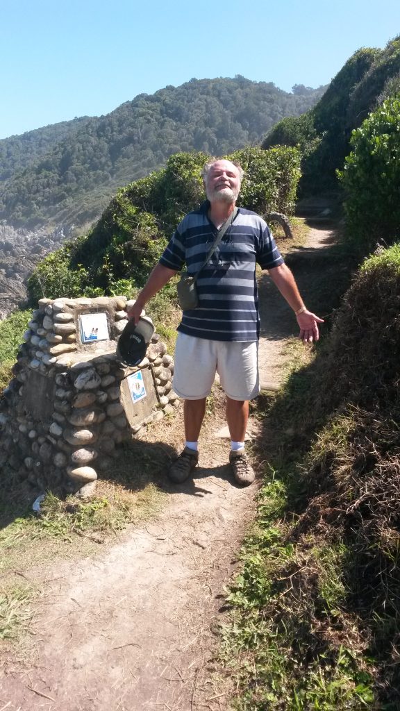 Die nog vroeg en ek en Anton besluit om die Otter Wandelpad wat hier begin en tot by Nature’s Valley gaan, ʼn entjie te gaan stap, tot by die waterval. Die totale roete is 43 km lank, baie uitdagend en dit neem 5 dae om te voltooi. Die waterval is ongeveer 6 km se stap daarheen en terug. Dis baie mooi en ons kan dit geniet sonder die full-kit wat mens moet dra as jy die vol roete doen, ons het net elkeen ʼn botteltjie water en kamera. Dis nie ʼn maklike roete nie, op en af en heelwat klim en klouter om oor die rotse te kom. Ons stop elke nou en dan en geniet die natuurskoon en gebruik die talle Kodak moments wat gebied word. Dit vat egter nie te lank om by die waterval uit te kom nie en ons spandeer ʼn tydjie hier, neem genoeg foto’s en vat die pad terug. Dis jammer Moeksie is nie ʼn stapper nie, knieë gee probleme, want ek sal graag die Otter eendag wil kom stap.