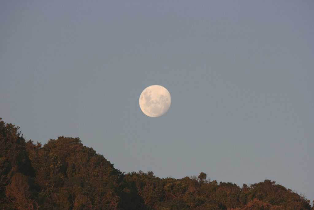 As die son in die see verdrink en ek omdraai en terugstap kamp toe, groet die volmaan my wat oor die berg opkom en ek moet eers ʼn minuut of twee staan om dit alles in te neem.